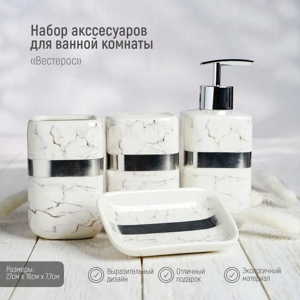 Набор для ванной "Вестерос" 4 предмета (мыльница, дозатор для мыла, 2 стакана) 5426137