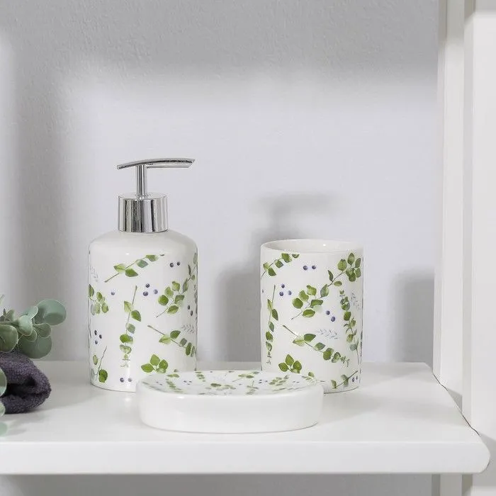 Набор для ванной "Эвкалипт" 3 предмета (мыльница. дозатор для мыла, стакан) 6244631