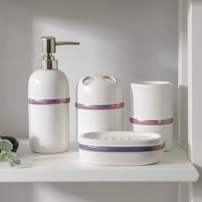 Набор для ванной "Бурлеск", 4 предмета (мыльница, дозатор для мыла, 2 стакана), цвет белый 6851673