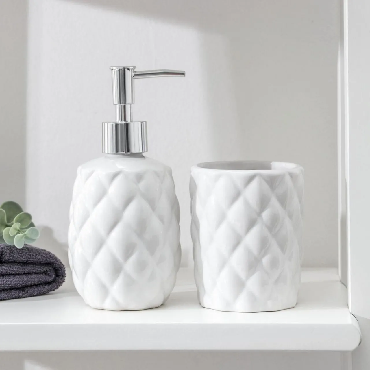 Набор для ванной "Ромбус", 2 предмета (дозатор для мыла, стакан), цвет белый 6243798