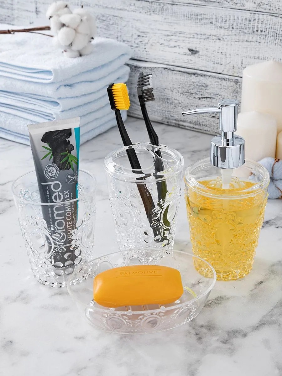 Набор для ванной 4 предмета "Барокко", мыльница, дозатор для мыла - 8,5*8,5*18,5 см 420 мл, стакан 8,5*8