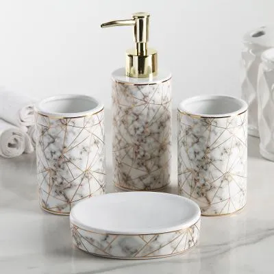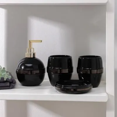 #Набор для ванной Grace 3 предмета (дозатор для мыла, стакан, мыльницы), цвет мрамор/черный 7500332