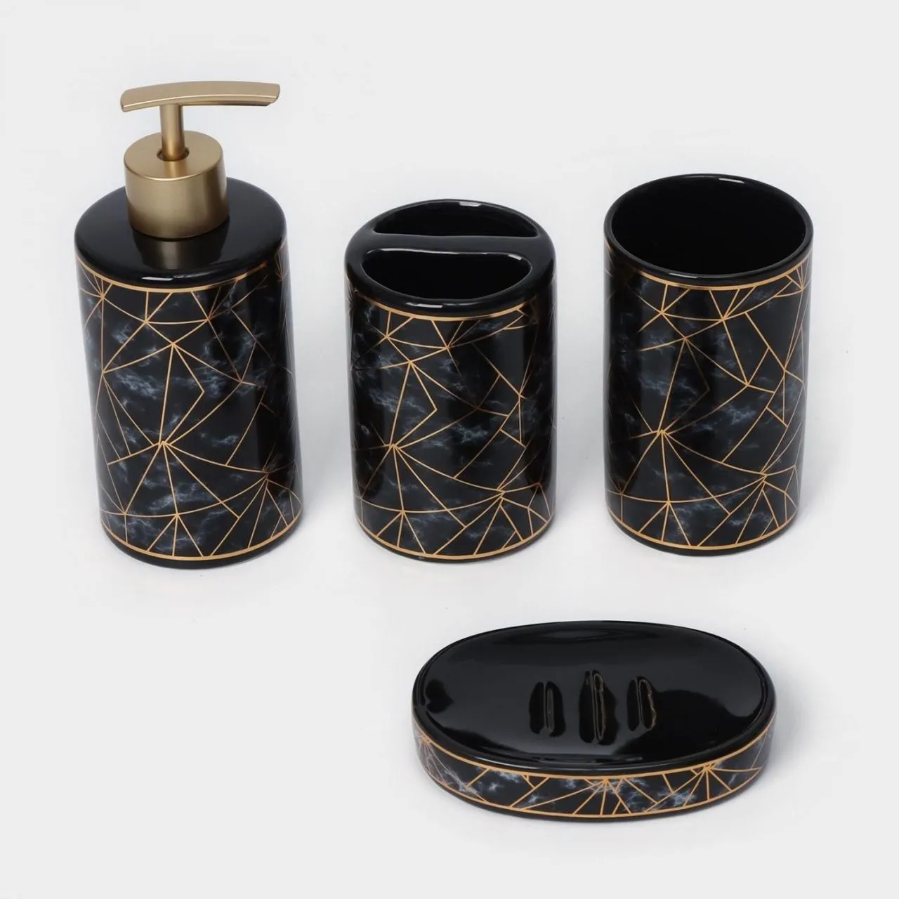 #Набор для ванной "Лофт", 4 предмета (мыльница, дозатор для мыла, 2 стакана), цвет черный 4330031