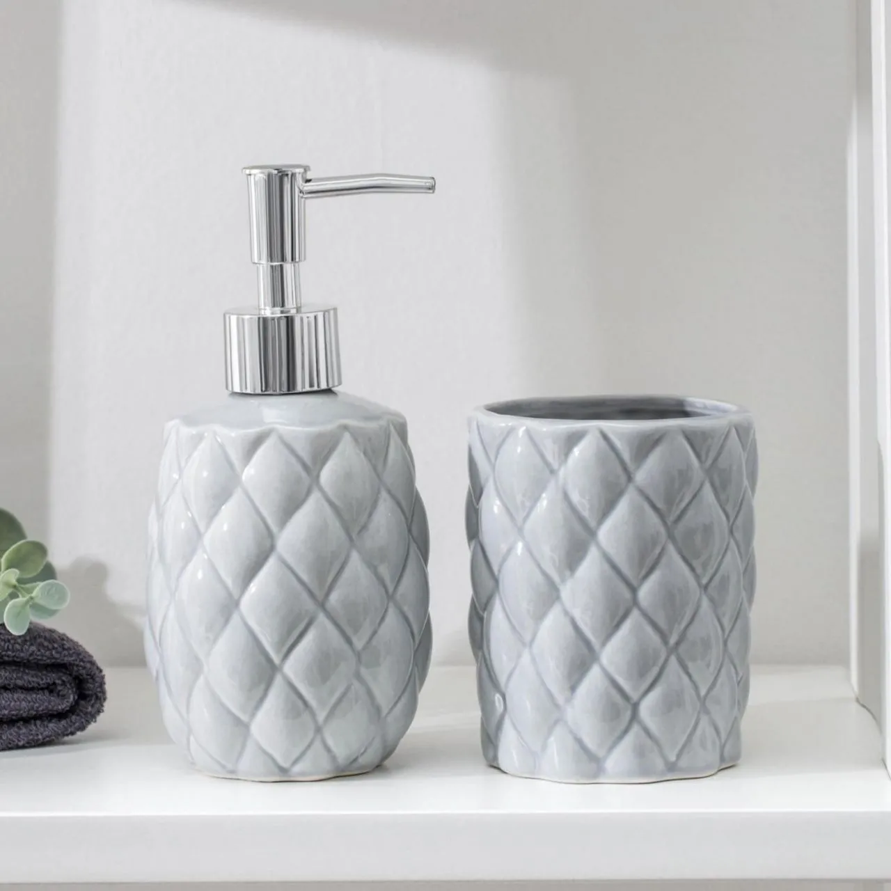 Набор для ванной "Ромбус", 2 предмета (дозатор для мыла, стакан), цвет серый 6243797