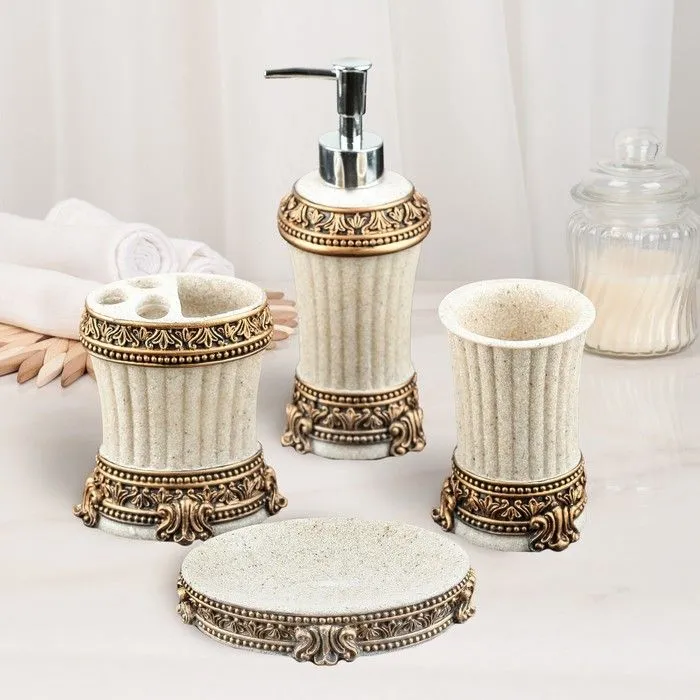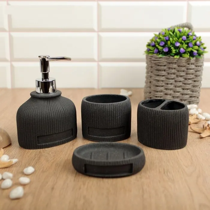 #Набор для ванной "Золотой бум", 4 предмета (мыльница, дозатор для мыла, 2 ст), цвет черный 7620378