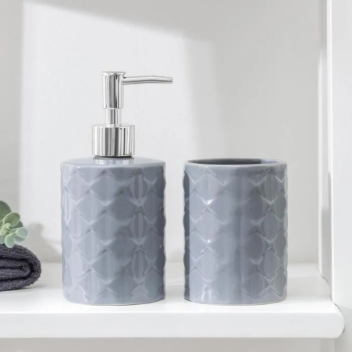 Набор для ванной "Ромбы", 2 предмета (дозатор для мыла, стакан), цвет серый 6243788