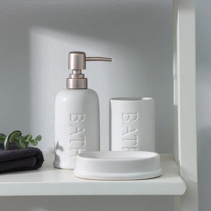 Набор для ванной "Бэкки" 3 предмета (мыльница. дозатор для мыла, стакан), цвет белый 5459658