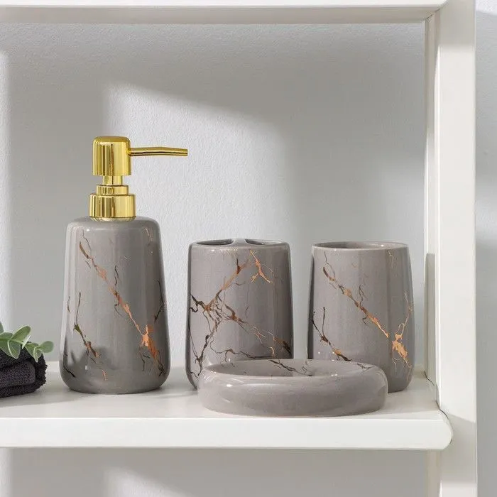 Набор для ванной "Гроза", 4 предмета (мыльница, дозатор для мыла, 2 стакана), цвет бежевый 7514786