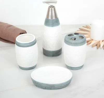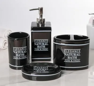 Набор для ванной "Малахит", 4 предмета (мыльница, дозатор для мыла, 2 стакана), цвет серый 7514789