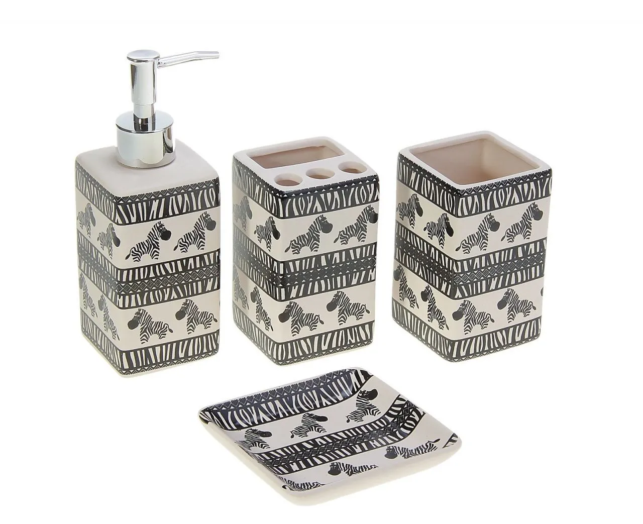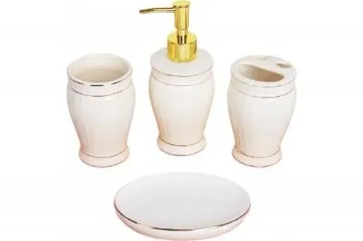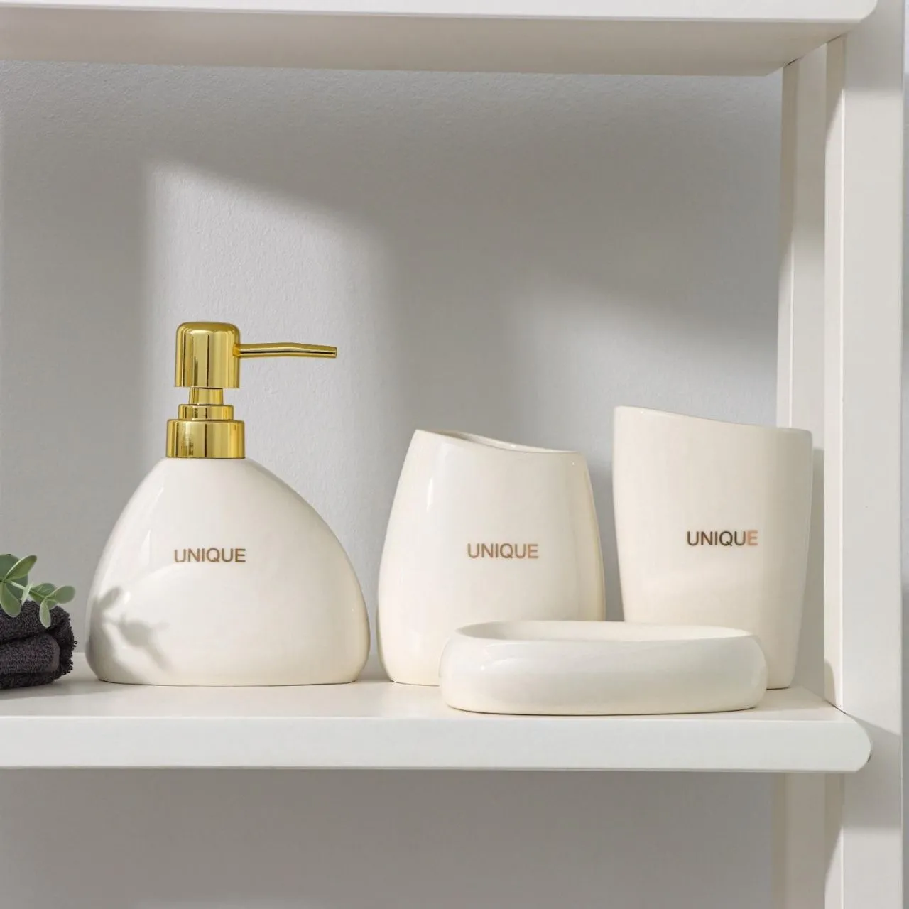 Набор для ванной Stone, 4 предмета (мыльница, дозатор для мыла, 2 стакана), цвет белый 7514793