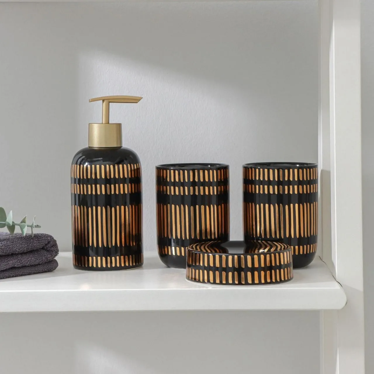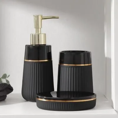 ##Набор для ванной "Золотой ром", 4 предмета (мыльница, дозатор для мыла, 2 ст), цвет черный 7620380