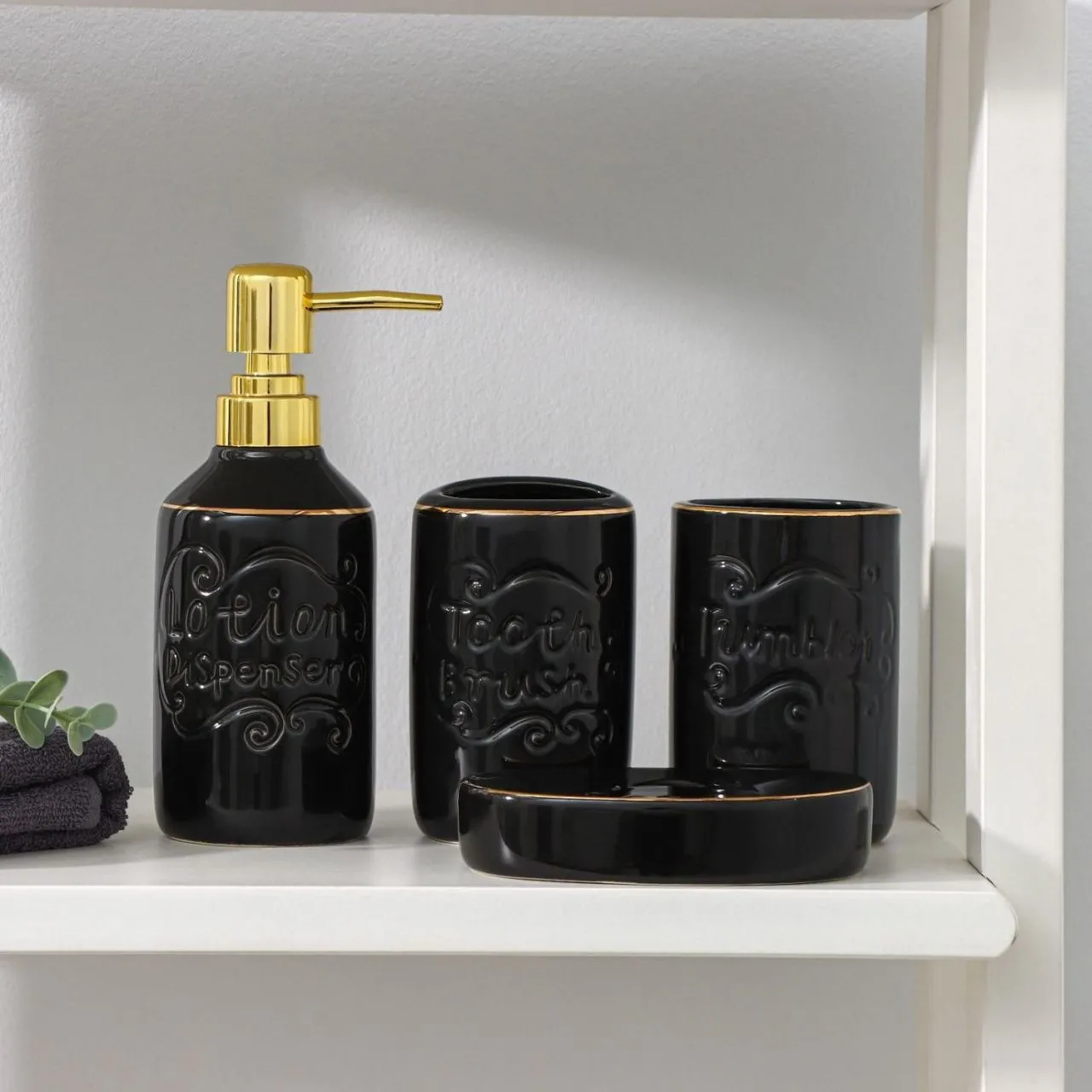 #Набор для ванной SOUL, 4 предмета (мыльница, дозатор для мыла, 2 стакана), цвет черный 7514783