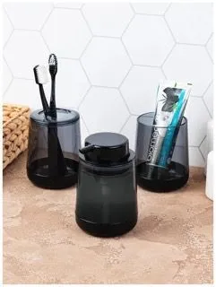 Набор для ванной 3 предмета "Черный", дозатор для мыла - 8,5*8,5*12,7 см 350 мл (высота без дозатора - 10,2 см), стакан 8,5*8,5*10,2 см, держатель зуб