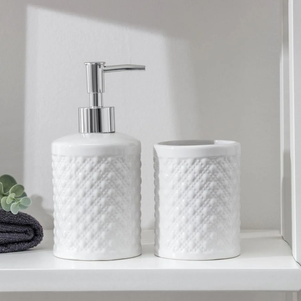Набор для ванной "Бусы", 2 предмета (дозатор для мыла, стакан), цвет белый 6243799