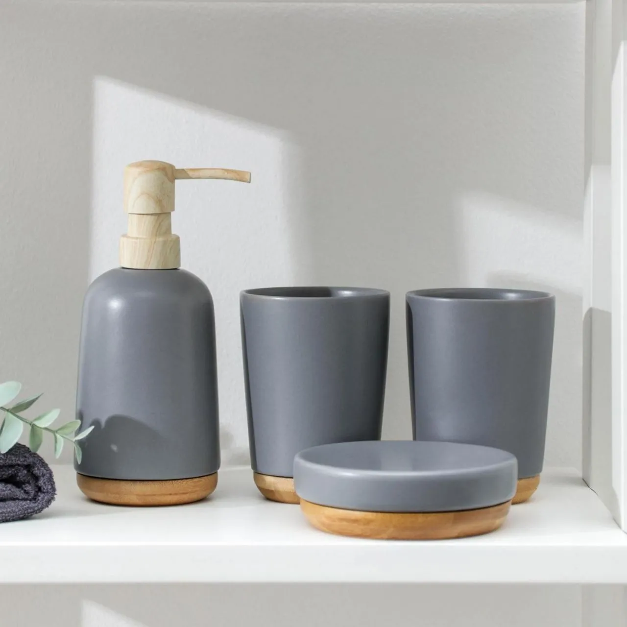 Набор для ванной "Эко" 4 предмета (мыльница. дозатор для мыла, 2 стакана), цвет серый 6851679