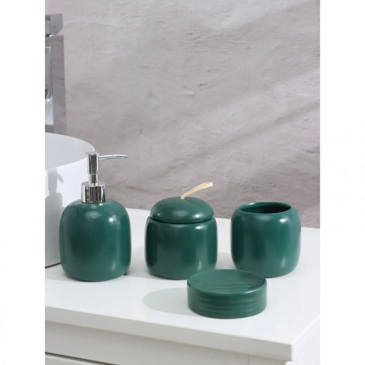 Набор для ванной "Monro", 4 пред.(мыльница, дозатор для мыла, стакан, баночка), цвет зеленый 6073218