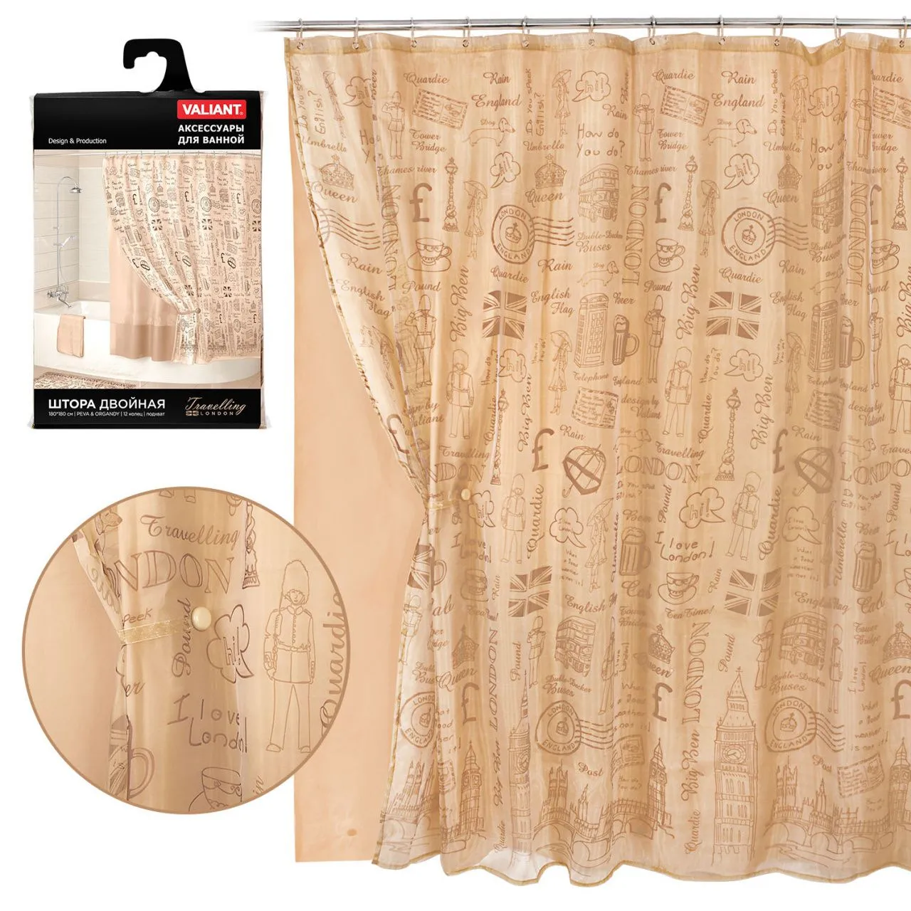 #VAL NC-6-SC-1820 Штора для ванной комнаты, полиэстер, 180*200 см, фактурн., серый, BOTANIC FACTURE