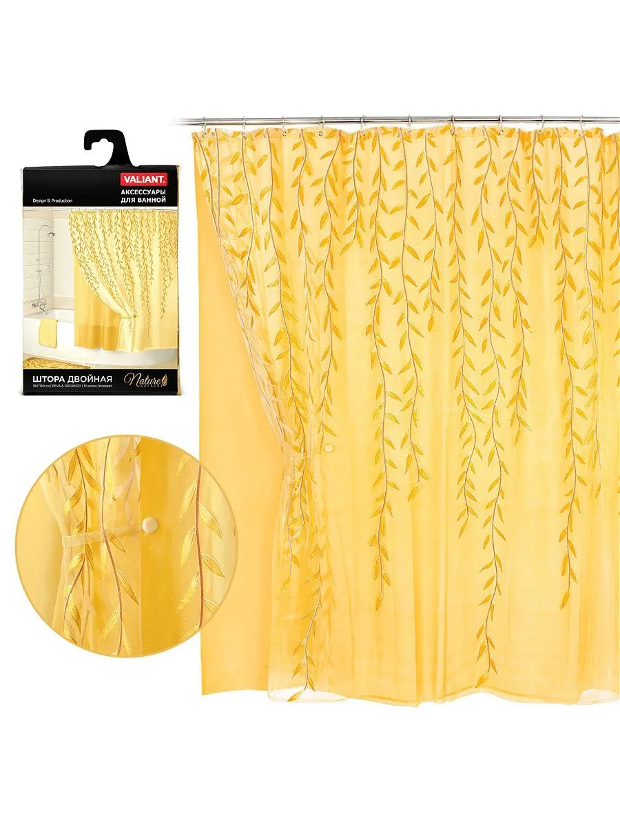 VAL DLX-B Штора для ванной комнаты DELUXE, 12 декор. крючков, полиэстер, 180*180 см, БАБОЧКИ