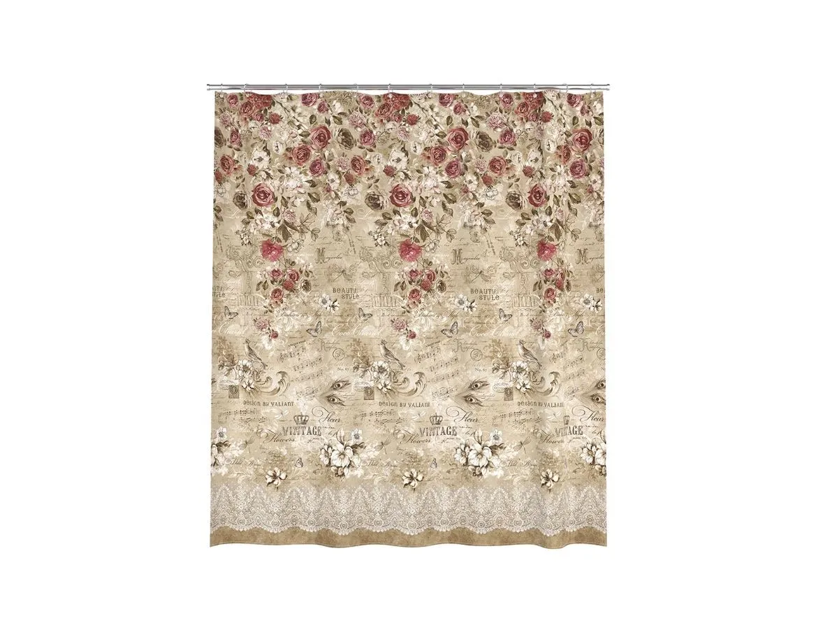 VAL VN-F-1818 Штора для ванной комнаты, полиэстер, 180*180 см, VINTAGE FLOWERS