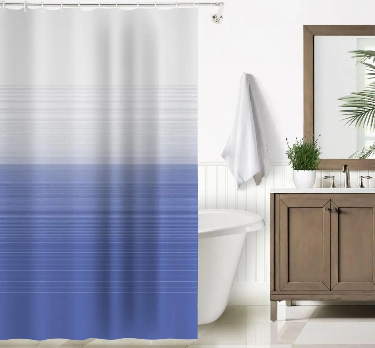 Занавеска Niklen для ванной с кольцами 100% полиэстер 178х180см Градиент, голубая