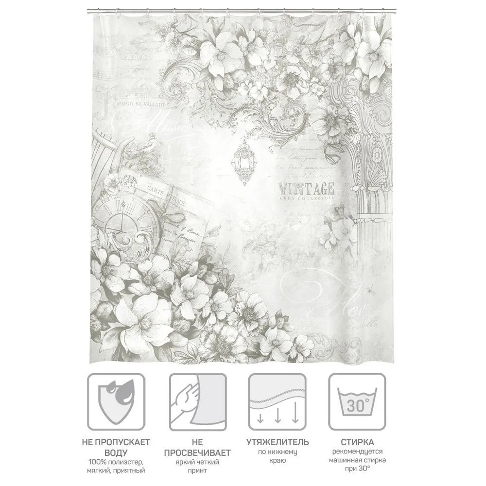 VAL VG-1818 Штора для ванной комнаты, полиэстер, 180*180 см, VINTAGE GREY